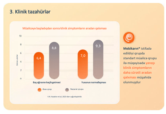 Mebikarın istifadə edildiyi kombinə olunmuş müalicə əsas müalicə ilə müqayisədə əhəmiyyətli üstünlüklər nümayiş etdirmişdir5.